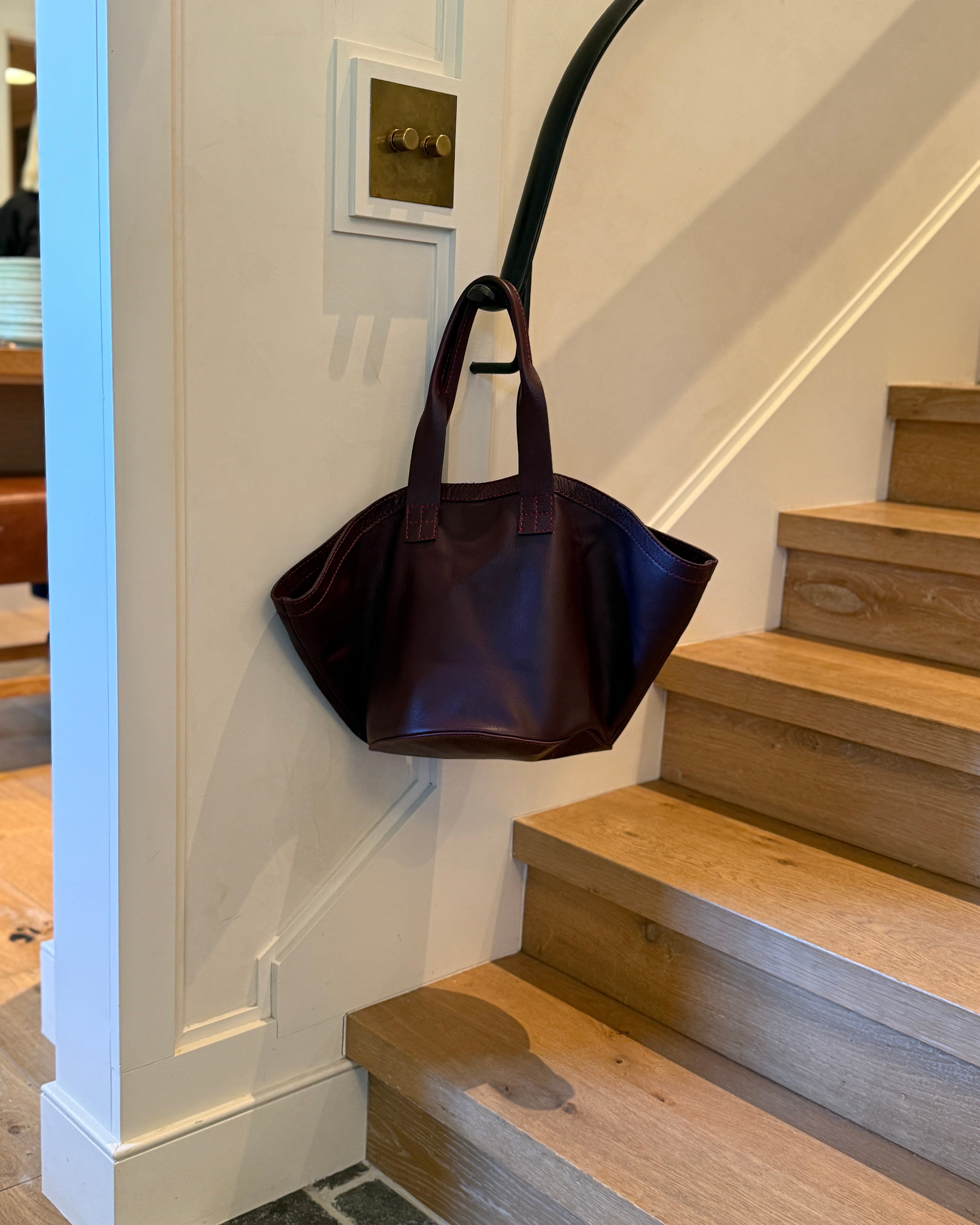 Discover our new Circle Bottom CarryAll in our saturated tone of Wine. The newest iteration of our leather carryall of yore! With an inside pocket to corral the smalls, reverse denim base for easy contents viewing and made from the softest, pliable, lightweight leather.