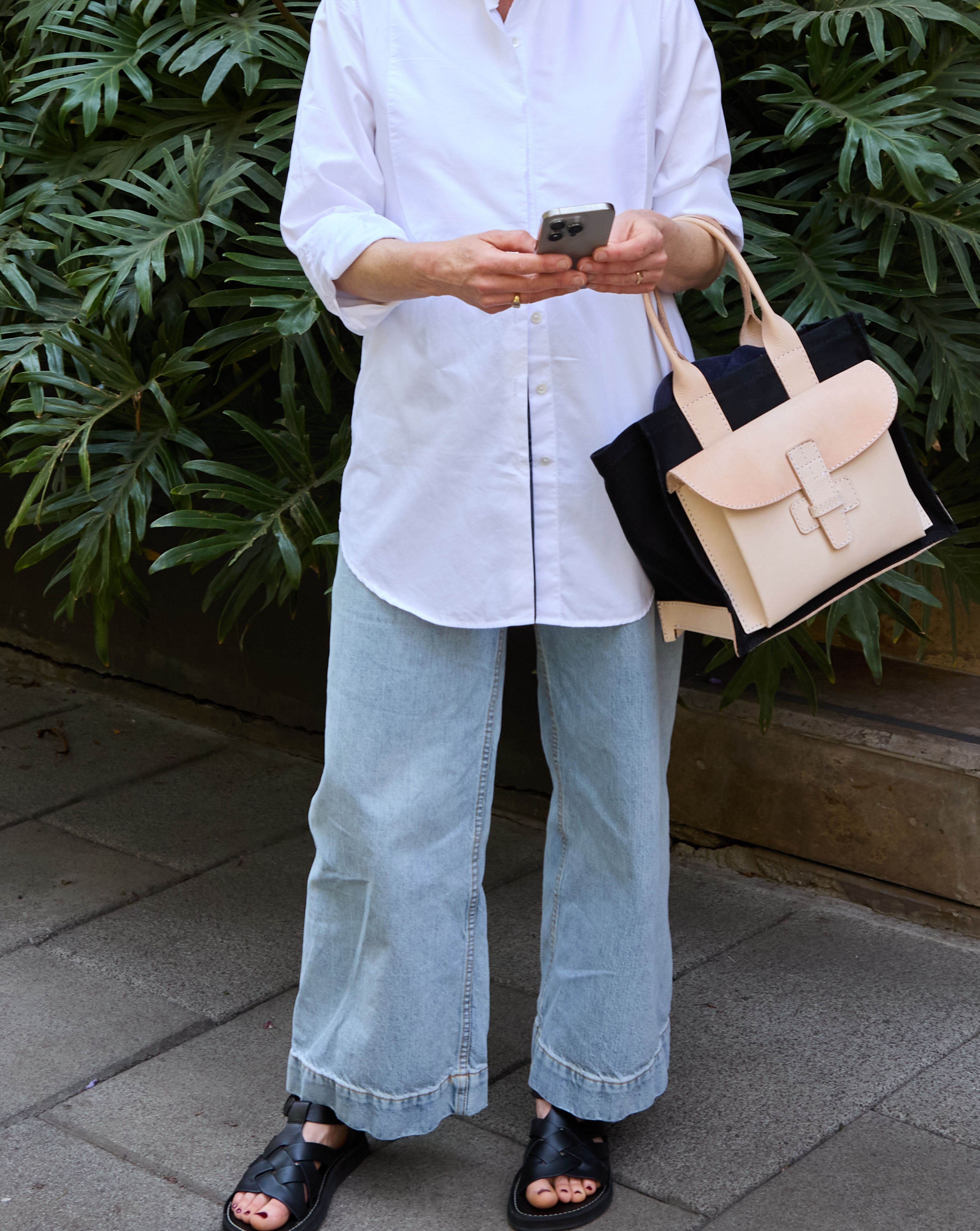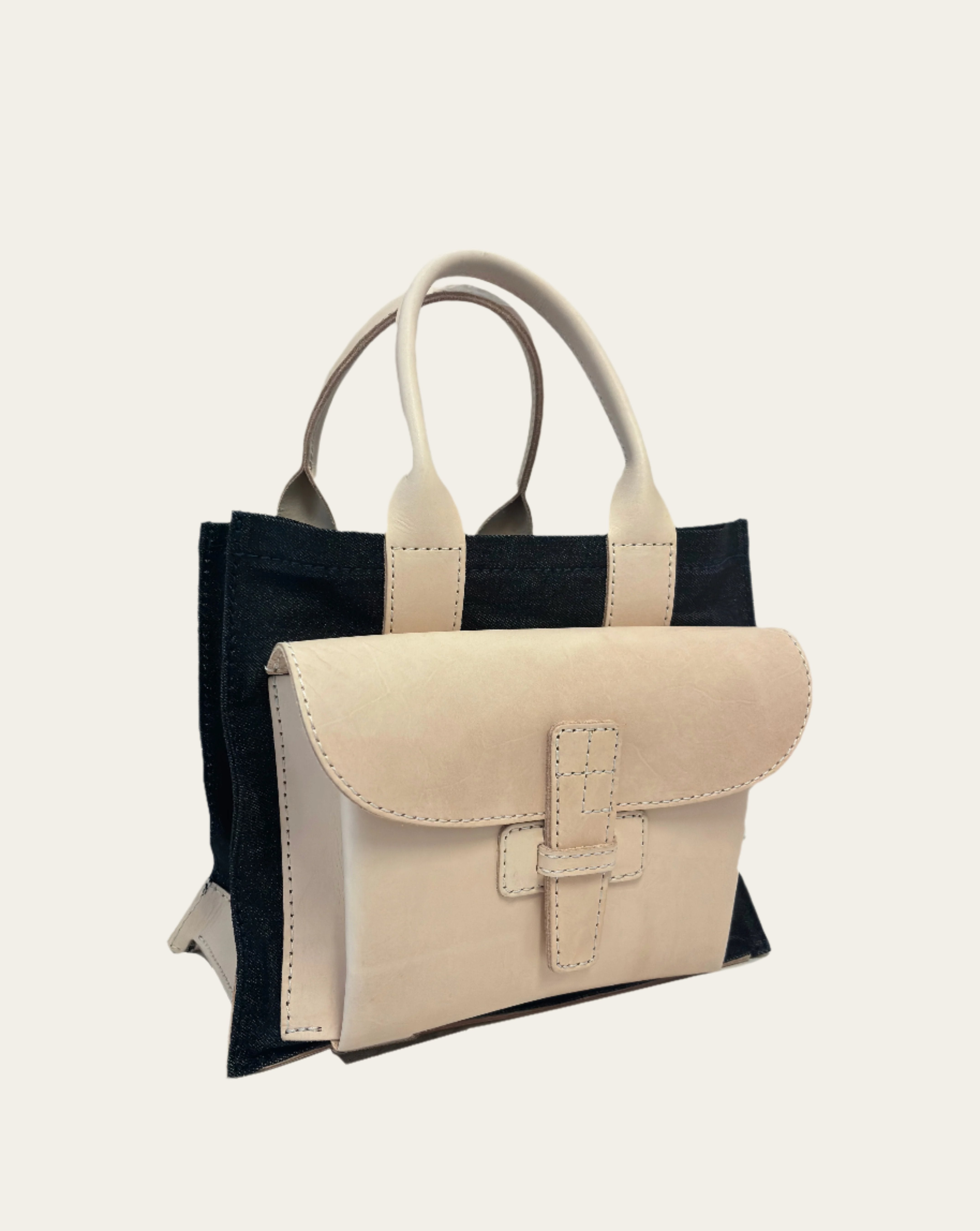 Discover our Sac 1 combination sac in Veggie Tan and Dark Denim.