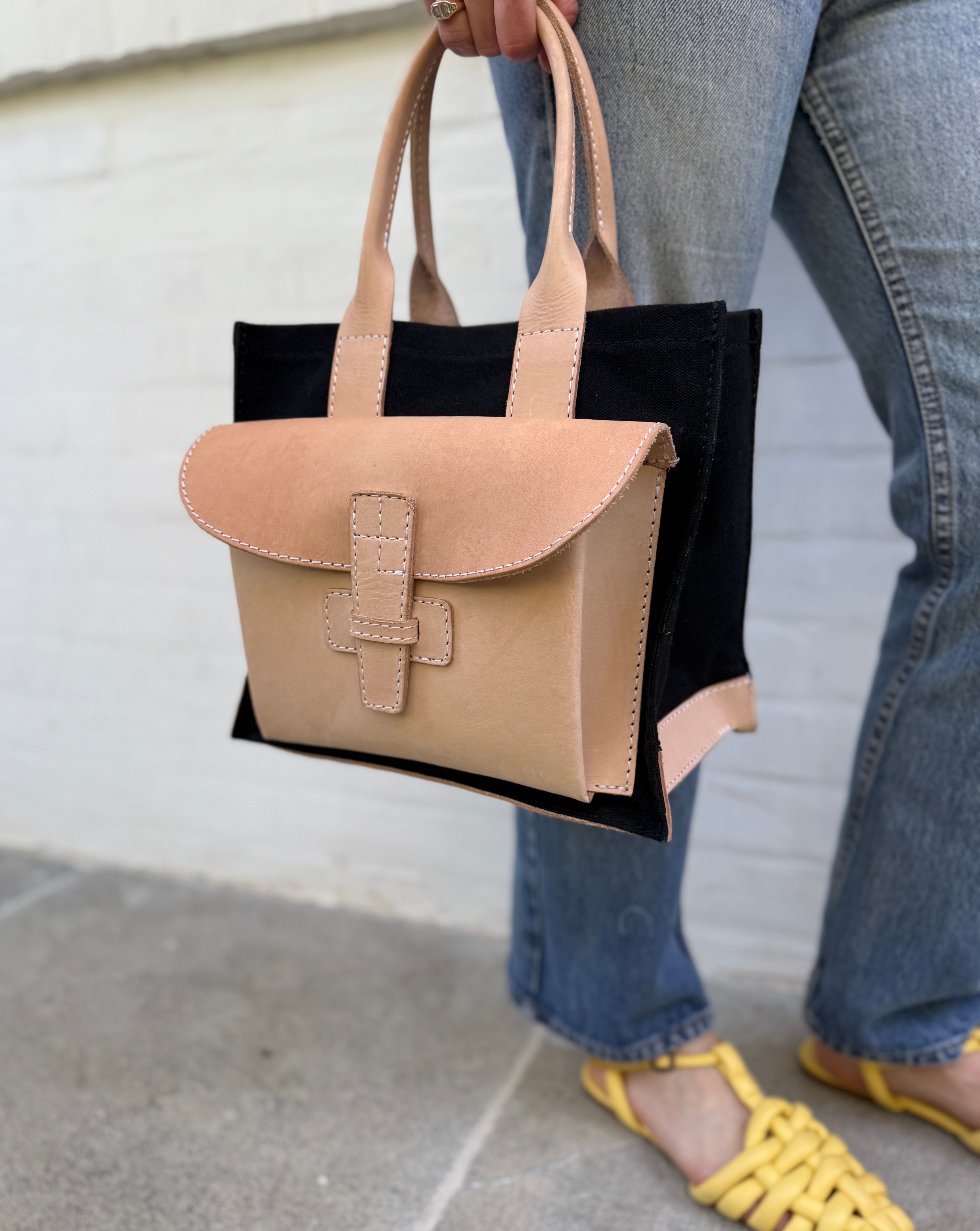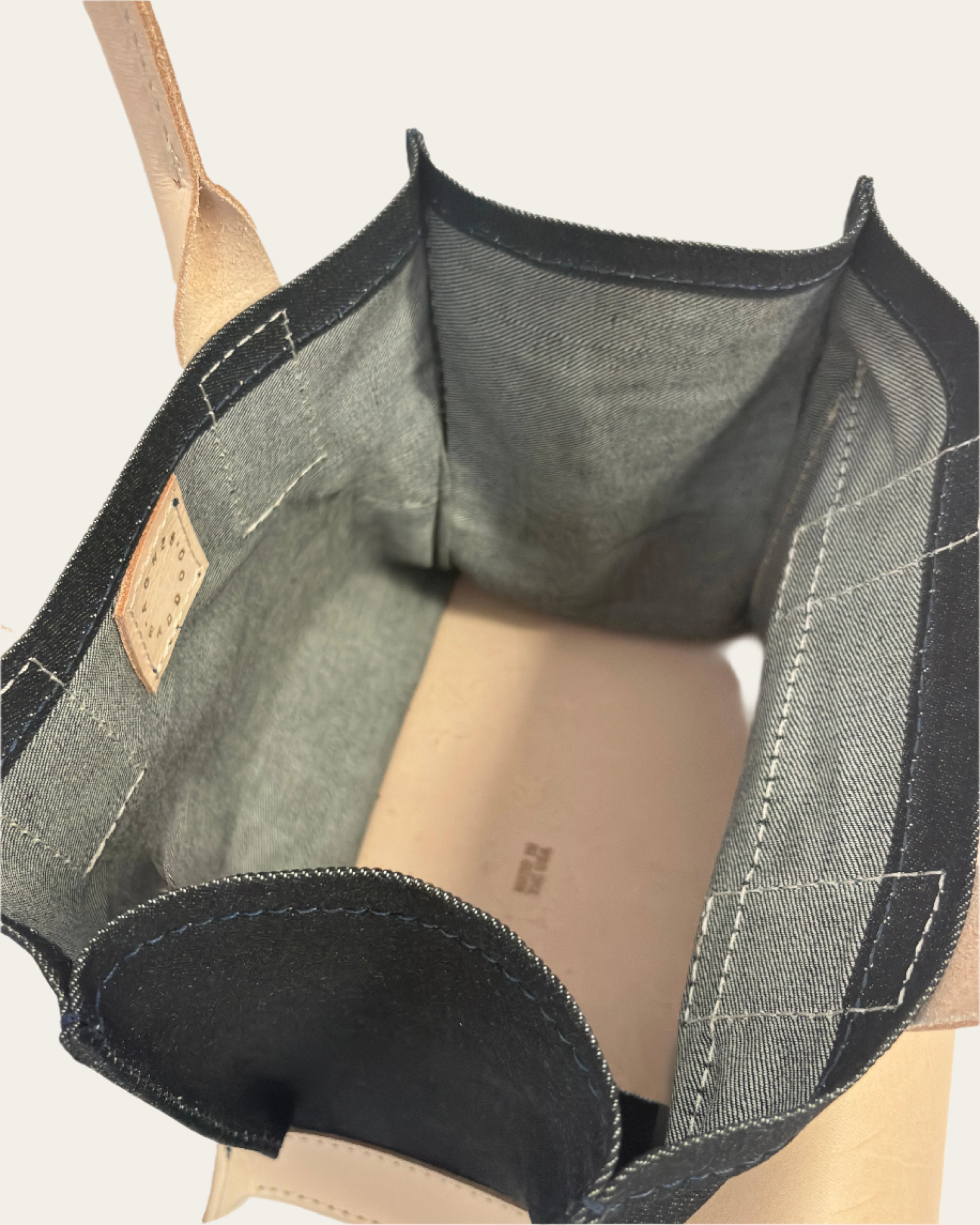 - Material: Denim and Veggie Tan Leather